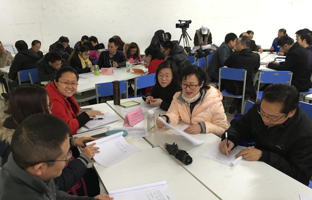 培训共有五个工作任务,重点是理解行动导向教学理念。韦处长采用头脑风暴法,让老师们阅读欧美等发达国家的教学案例,然后分组采用引导文法让大家写出关键词,用多媒体教学法归纳分类,推出情境教学法理念,使大家对行动导向教学的定义及基本特征有了更深层次的理解。在“选出你认为最能体现一堂好课的5项指标”环节,引发了老师们积极热烈的讨论和发言,提出自己对一堂好课的理解和标准。最后,韦处长结合多年的从教经验和丰富的职业教育教学理论,提出“好的课堂是没有唯一标准的,没有最好,只有更好”。