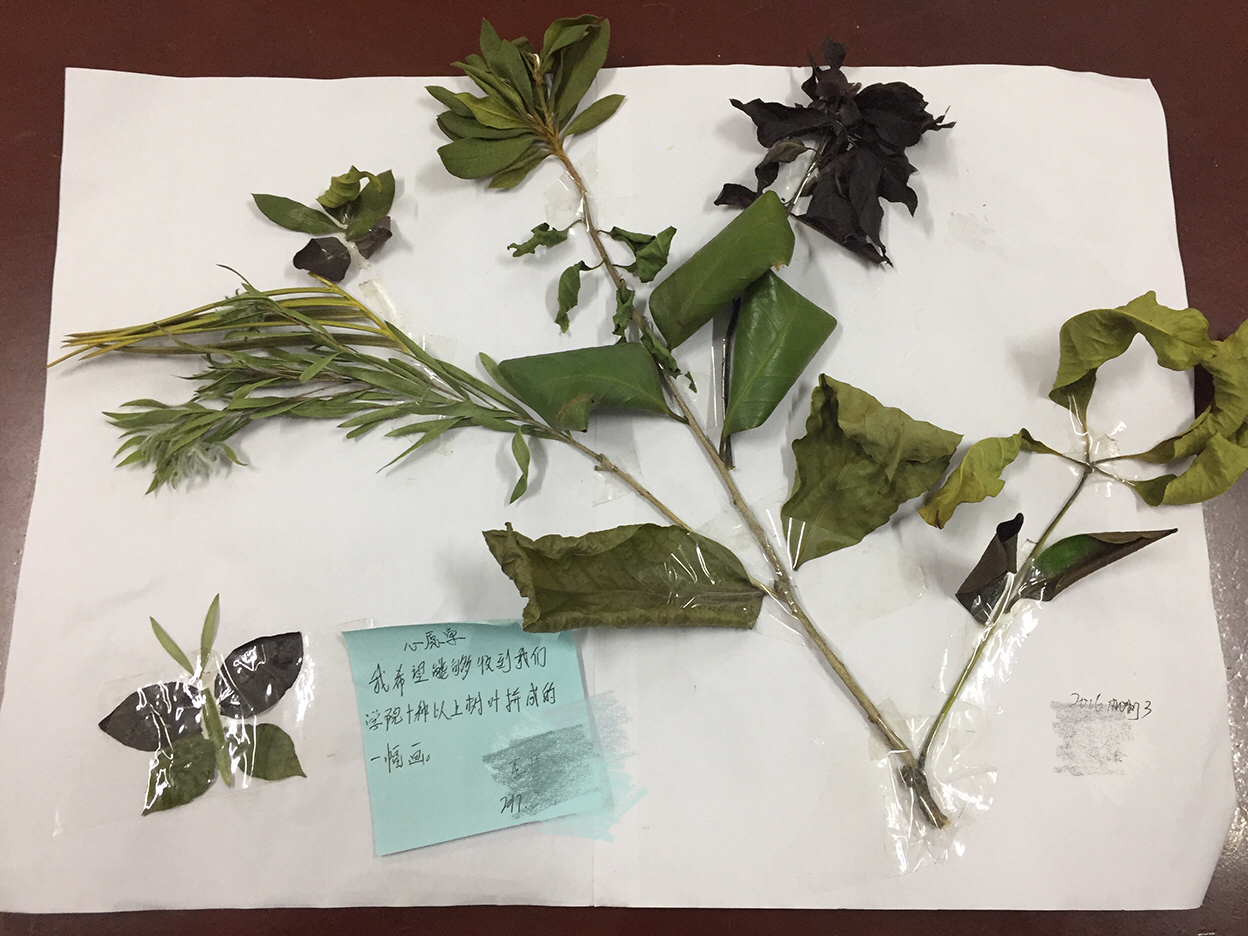 用校园里10种以上的树叶拼成的一幅画--你确定不是在折磨人?(微笑脸)