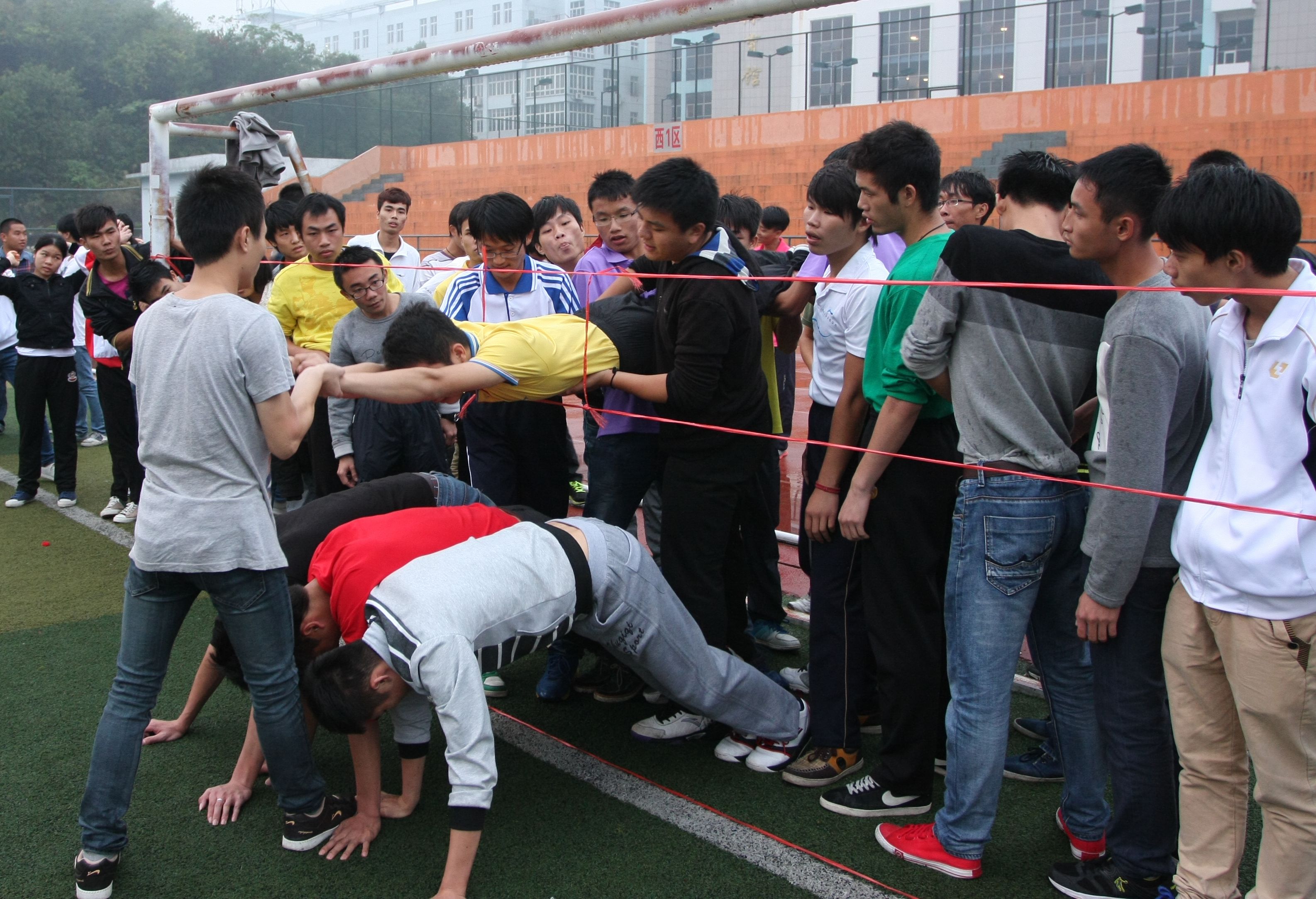 下午,全体学员分别在学院体育馆四楼和田径场开展了以培养团队凝聚力和领导力为主要目的的素质拓展训练,专业教练来自柳州市拓海素质训练基地的教学团队。队员们被分成4个风、云、雷、电4小分队,在两位专业教练的带领下共同完成10个训练项目。活动中,各小分队即兴创作和展示独具特色的团队文化,学员们服从指挥,密切合作,群策群力,共同闯过一个又一个难关。尤其在最后的项目“穿越电网”时,同学们一次又一次地触网、受罚、重来……虽然已是晚上7点多钟,天完全黑了,队员们相互鼓励,勇于担当,没有一个同学放弃、灰心、掉队。最后,在田径场上,每个同学发自肺腑地用一句话说出了自己的体会和收获,全体同学动容地大声喊出感谢父母、感谢队友、感谢学校!声音在宁静的的夜空上盘旋、回荡。