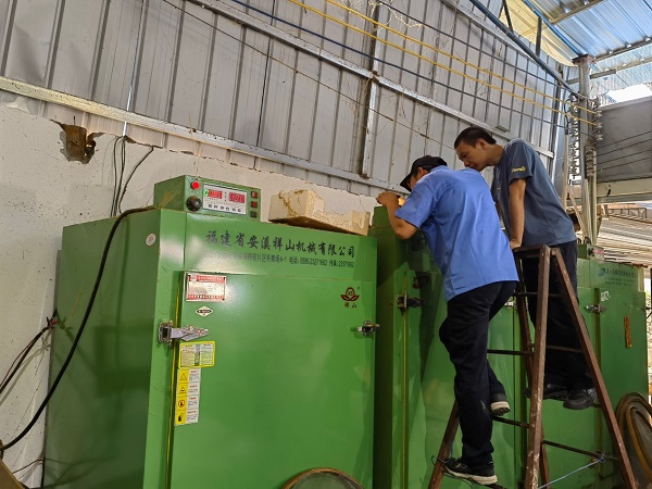 吴师傅详细介绍了茶叶揉捻机、打散机、烘烤机、绿茶成型机等设备的用途和功能,希望能设计出适合乡村使用的自动化流水线。“双带头人”、教师党支部书记韦江波代表党员教师志愿服务团队和吴师傅在茶叶生产的机械和自动控制方面进行了技术交流,希望能在校企合作、乡村振兴方面开展深入的合作,在为企业解决实际生产问题的同时,提升党员教师的专业技术水平。最后,教工二支部书记潘庆,林玉强老师对厂区的用电和设备进行安全检查和设备维护,并对厂区的故障烘烤机进行检修。