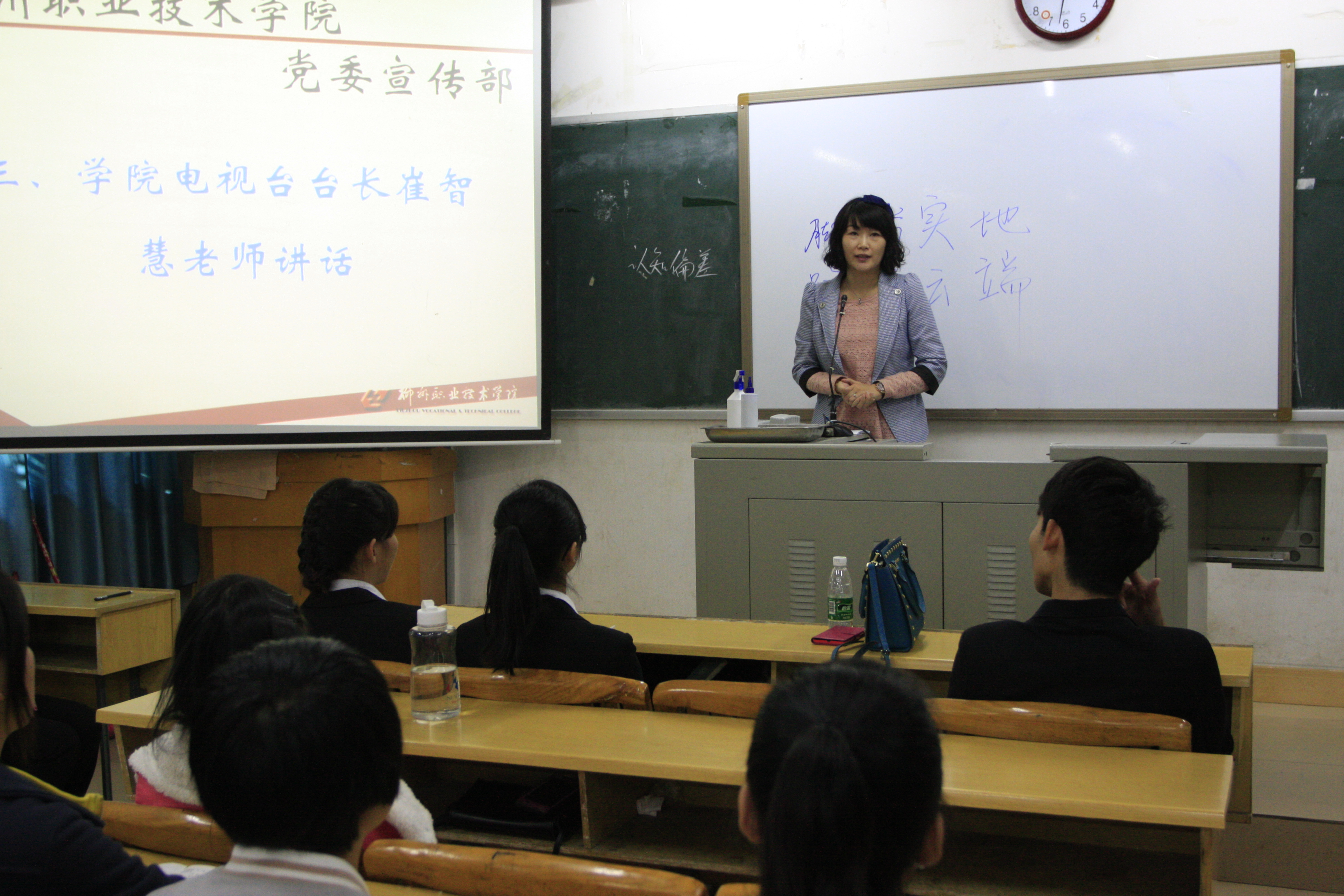 学院电视台台长崔智慧老师鼓励同学们开拓创新、自我完善!