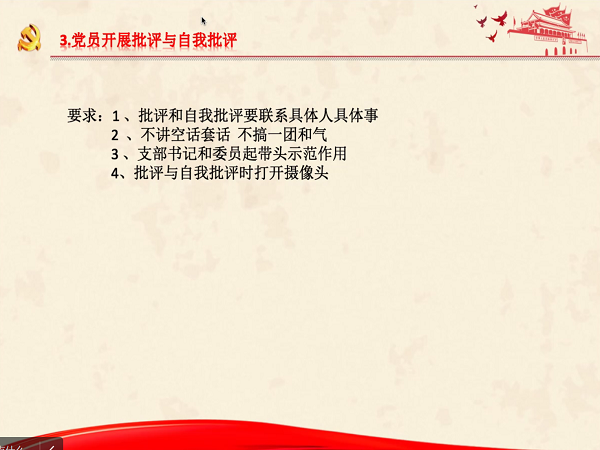 会议包括教工支部委员会述职、通报教工支部委员会查摆问题、党员对教工支部委员会的工作进行评议、党员开展批评与自我批评、民主评议党员五项议程。