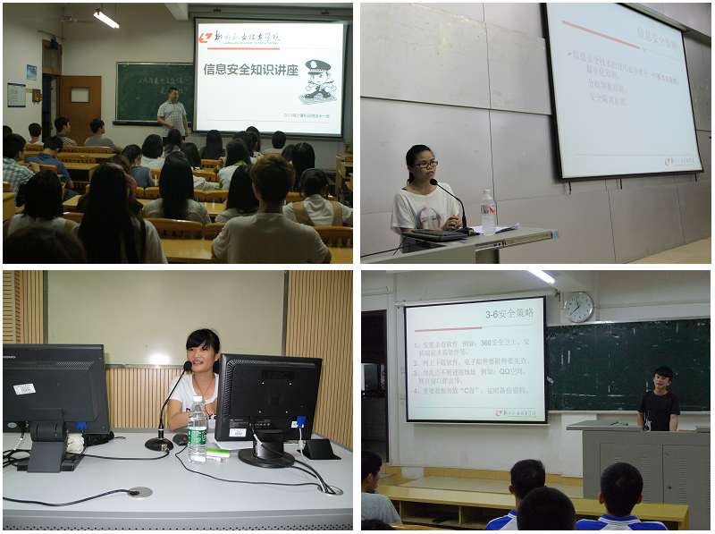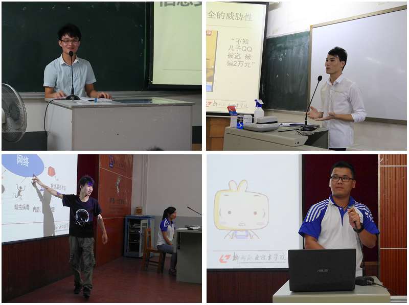 6月8日晚上,7个小组如期到达七个系开展宣讲活动。各主讲人围绕着信息安全的基本常识、信息安全会受到哪些因素的威胁、对这些威胁我们有哪些对策,如何保护自己的信息安全以及如何共建网络文明等内容进行讲解。主讲人通过真实的案例、精彩的视频,用幽默的语言把枯燥的专业术语讲述出来,与听众们共同分享和学习信息安全的知识。