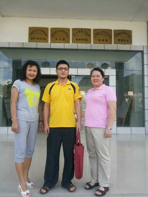 小组成员张云霞(左)、林翔君(右)与巴马招办刘干事合影留念