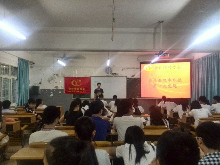 新闻网消息(通讯员/会计理财协会 张双双、徐日彬)5月31日19:00,会计理财协会在德润楼104教室举办第九届理事竞选大会,院社团联合会主席及协会往届理事及会员代表100余人参加。竞选会共分为两个环节,分别以脱稿上台演讲与PPT演讲两种形式完成竞选仪式。