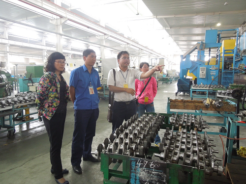 该系学生科科长杨南一行深入车间了解曲轴加工工艺流程