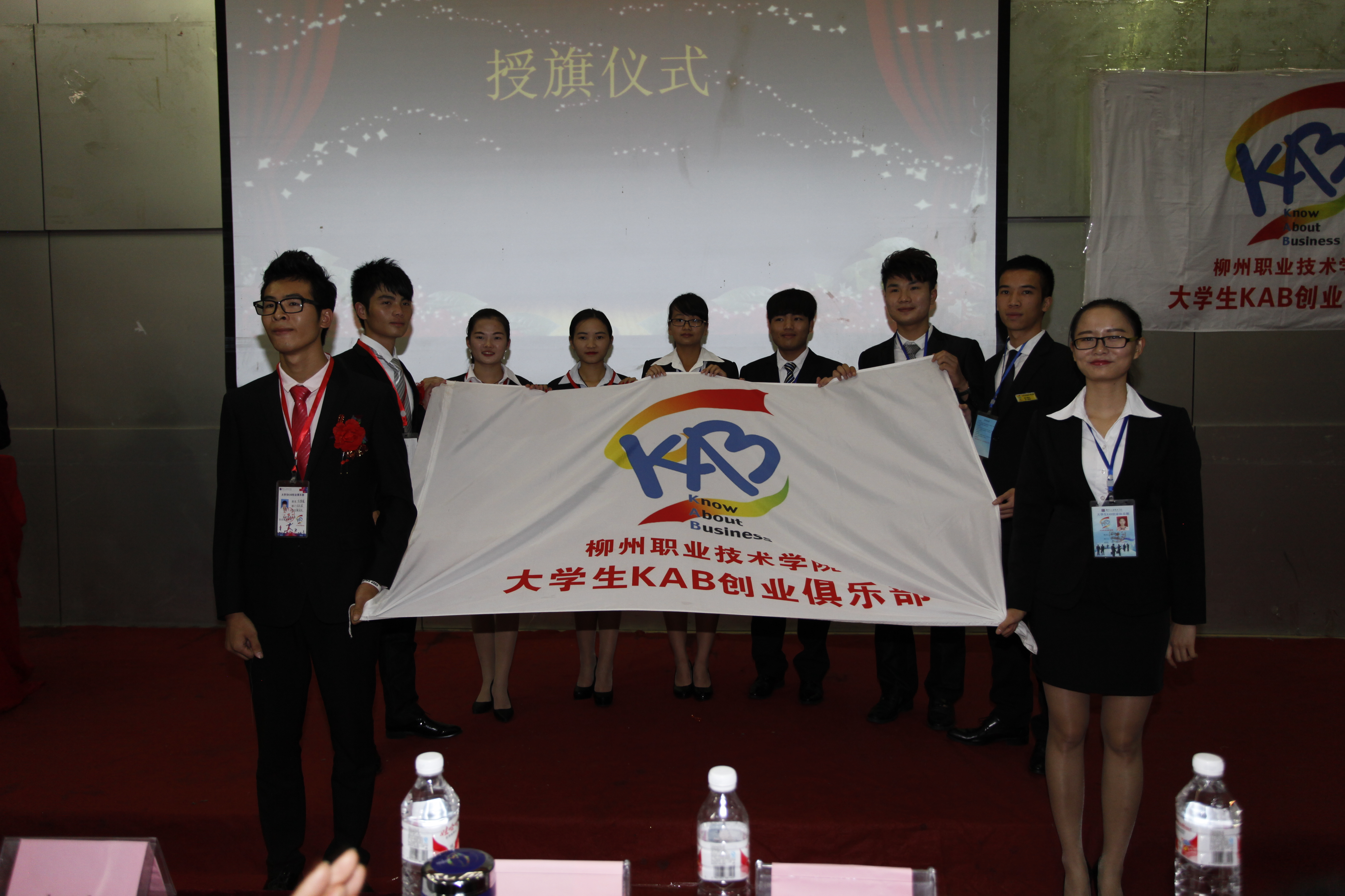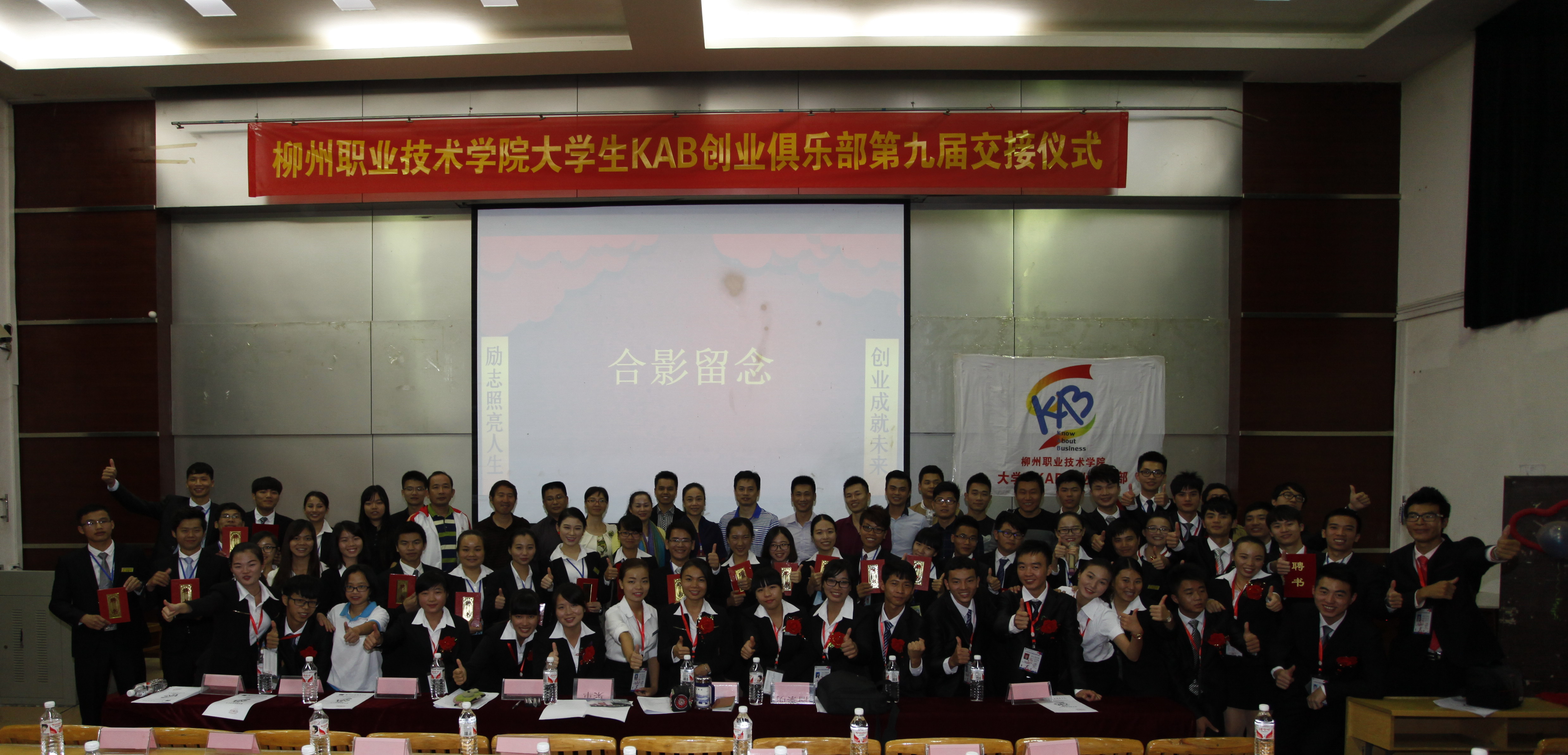 新闻网消息(通讯员/公共基础部 黄志卫 大学生KAB创业俱乐部李杰鑫)10月12日下午,随着激昂雄壮的国歌奏响,我院大学生KAB创业俱乐部第九届理事会交接仪式在博闻楼101教室举行。本次活动出席的领导和嘉宾有柳州巿人才办科长梁革、柳州市创业投资协会、柳州巿青年企业家代表、学院招生就业处处长黄莉、教务与实训管理处处长韦林、后勤与财务处处长邓亮顺、公共基础部副主任陈芳、李革以及院团委、各系部的领导、老师;学院社团联、学生会、各兄弟社团代表、大学生KAB创业俱乐部第一届到第七届在柳州工作的前任理事以及部分大一新生参加了交接仪式。