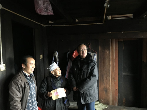 1月8日上午7时,该系一行人经过七个半小时的路途奔波,终于来到了三江县北部与贵州省交界的唐朝村,该系一行人经该村吴支书的带领下重点走访慰问了吴奶言花、吴奶秀连两位五保孤寡老人。 -