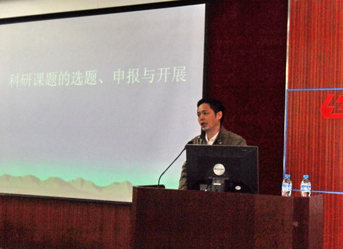 会上,谭处长主要从科研课题的选题、申报与开展等方面进行发言。着重以创新性、需要性、科学性、可行性、效能性、目标集中六个部分讲解选题的原则。在如何从工作实践中发现问题、研究问题,将问题变为课题上,做了较为深入的探讨。在申报立项这一环节上,谭处长提出两个关键点,一是要掌握了解课题申报渠道、课题申报范围和要求;二是要写好课题论证报告。并列举了我院教职工目前课题申报主要渠道。该系彭学老师做了创新、发明专题发言,着重从如何创新目标、创新目的、创新问题、创新任务等方面谈了自身近年来在创新发明工作上的经验。