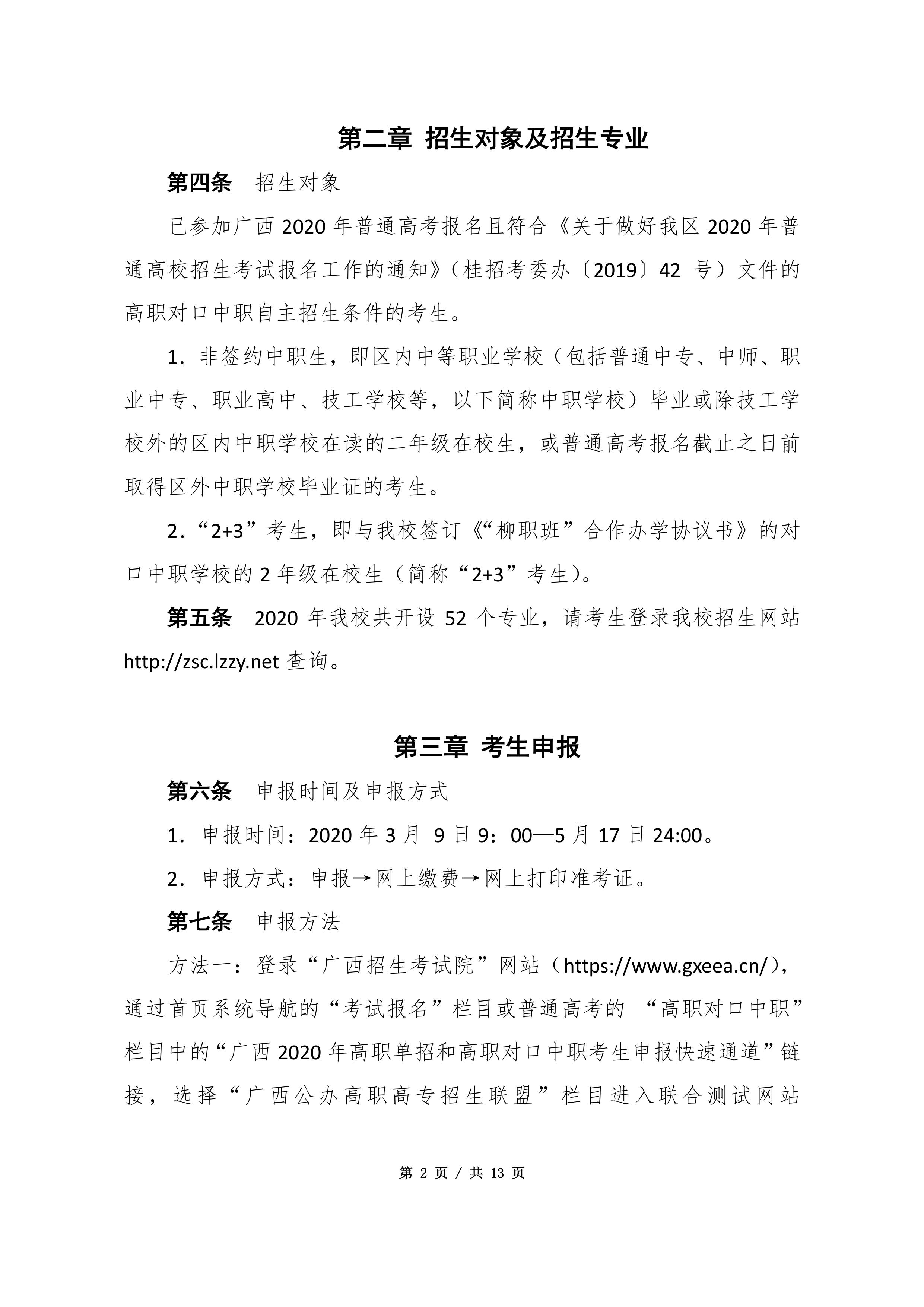 柳州职业技术学院2020年高职对口中职自主招生简章