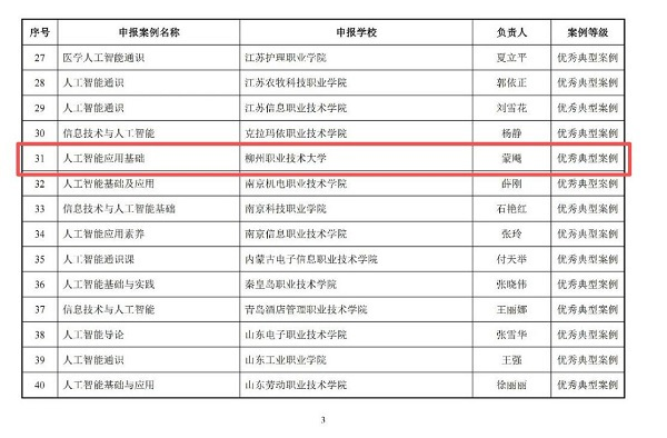 From News Center (Text and photos by Shi Qi, School of Electronic Information Engineering) On March 30, 2026, the case Fundamentals of AI Applications, submitted by the AI General Course team led by Prof. Meng Biao from the School of Electronic Information Engineering, was selected as an Outstanding Typical Case of AI General Course by the Ministry of Education. Meanwhile, the case Multilingual Education and Training Intelligent Agent for ASEAN, submitted by the enterprise project delivery team led by Prof. Jiang Wensheng, was included in the list of Outstanding Typical Cases of AI Application Scenarios issued by the Ministry of Education. The successful selection of these two typical cases demonstrates LZPU's outstanding achievements and innovative strength in integrating AI into education and teaching.