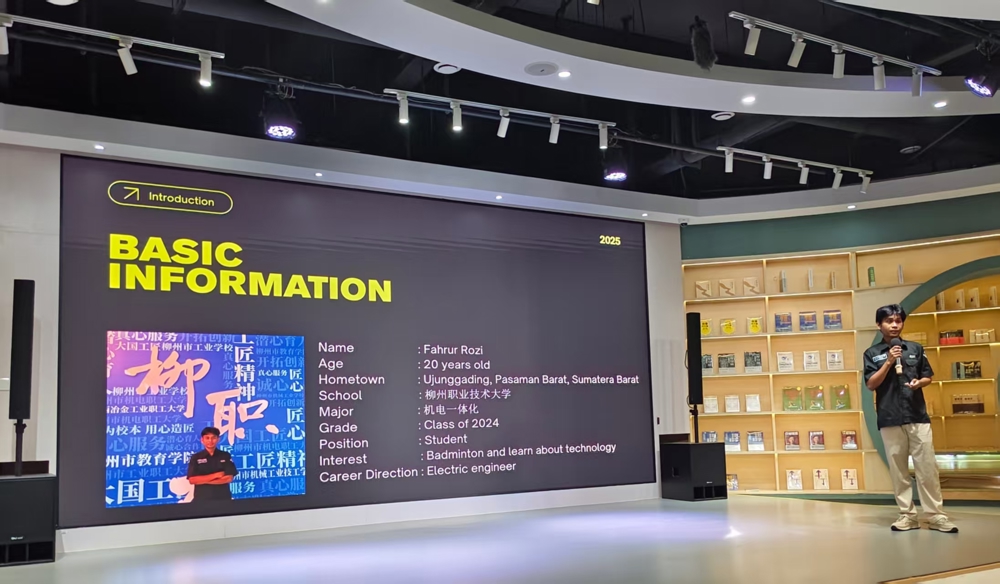 比赛现场,选手们围绕电气工程师、机械设计师、智能制造技术员等机电类核心职业方向,结合行业发展趋势与个人优势,通过PPT生动展示了职业目标定位、发展路径设计、实施计划安排及评估调整机制。在答辩环节,面对评委关于职业技能提升、行业挑战应对、地域产业适配等问题,选手们从容应答、逻辑清晰,展现出扎实的专业基础和对职业发展的深入思考。值得一提的是,来自印度尼西亚的留学生ROZI凭借清晰的职业定位、扎实的专业规划与跨文化发展视野,成为大赛中一道亮眼的跨国风景线。作为扎根我院求学的国际学子,ROZI深耕机电一体化领域,结合印尼本土产业需求与中国行业发展优势,构建了“专业深耕+跨文化适配”的职业发展路径,体现了我院国际化办学的丰硕成果。