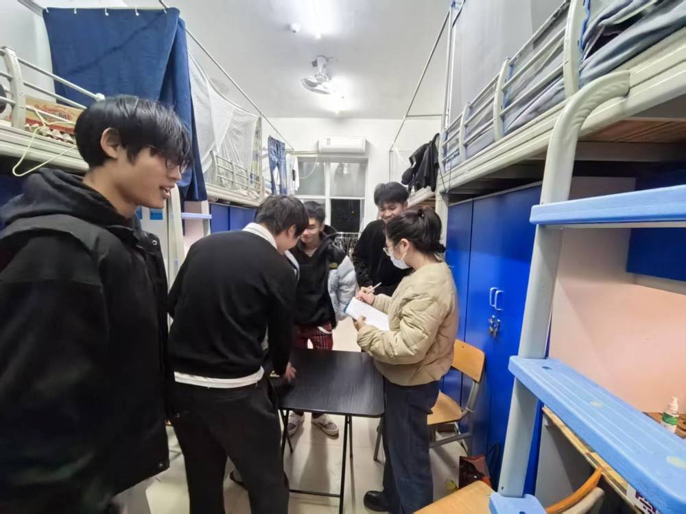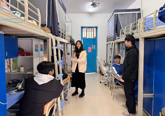 走访过程中,老师们与同学们亲切交流,详细了解大家的假期出行计划、留校安排及生活需求。他们反复叮嘱同学们,离校前务必做好“关水、关电、关门窗”三件事,妥善保管电脑、手机等贵重物品,将现金、证件等重要物品随身携带或锁好;出行时遵守交通规则,注意旅途安全,不参与危险活动,将安全理念融入日常行为习惯。