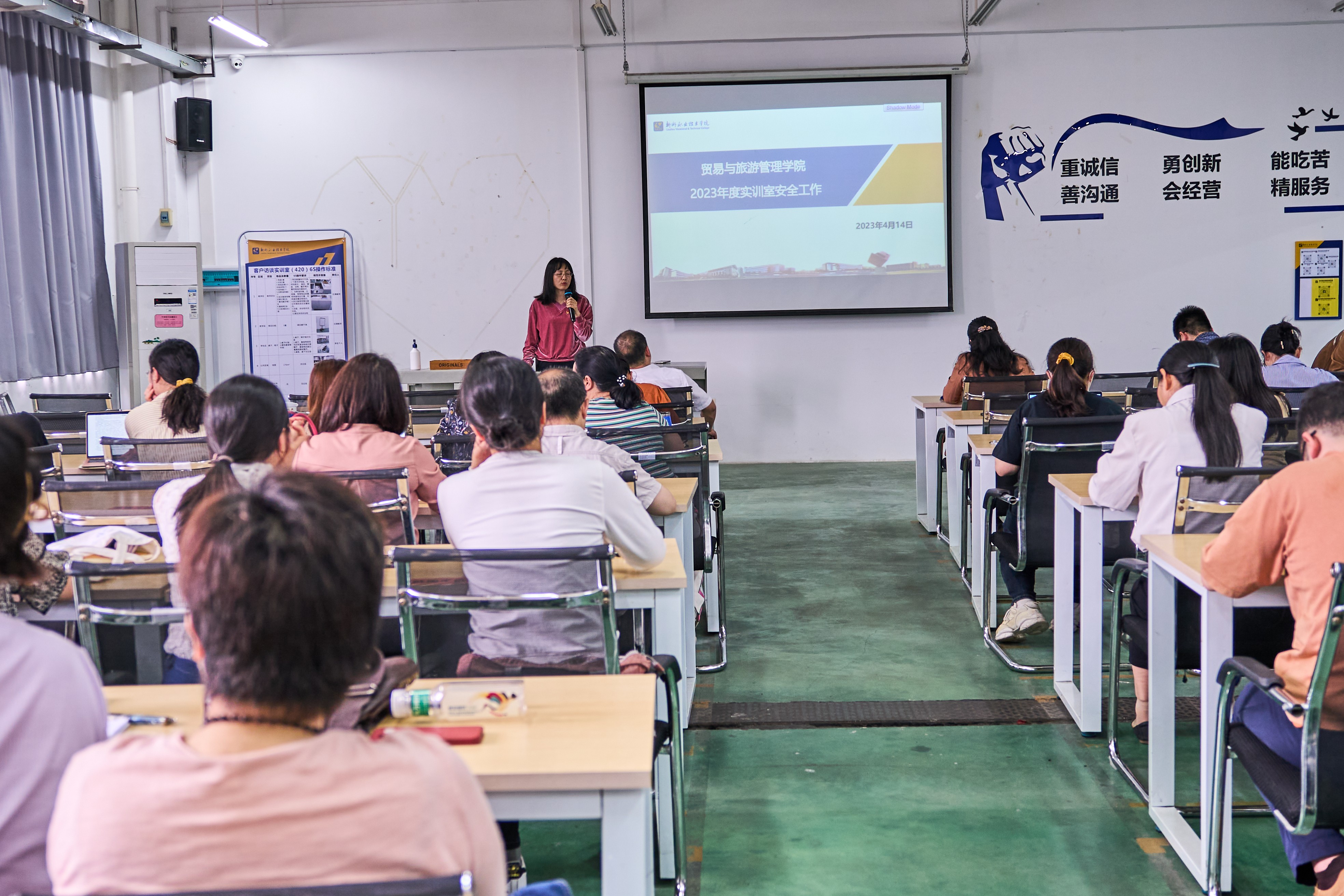 随后,学院副院长杨歌谣给大家做了2023年度实训室安全工作培训,要求全体教师贯彻落实《贸易与旅游管理学院实训指导教师职责》,并签订《贸易与旅游管理学院实训室管理安全责任书》。